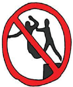 Simbol yang terakhir yaitu sebuah sketsa seorang anak dengan tangan yang sedang mendorong temannya dengan garis merah memanjang menutupi simbol. Maksud dari gambar tersebut adalah “Dilarang Mendorong Teman Yang Berada di Pinggir Kolam”.